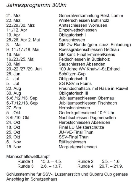Der Bereich Sportschiessen 300 m ist hauptsächlich vom Frühjahr bis Herbst, mit diversen Aktivitäten im Schützenhaus Ruswil, aber auch an diversen Anlässen in der ganzen Schweiz unterwegs.